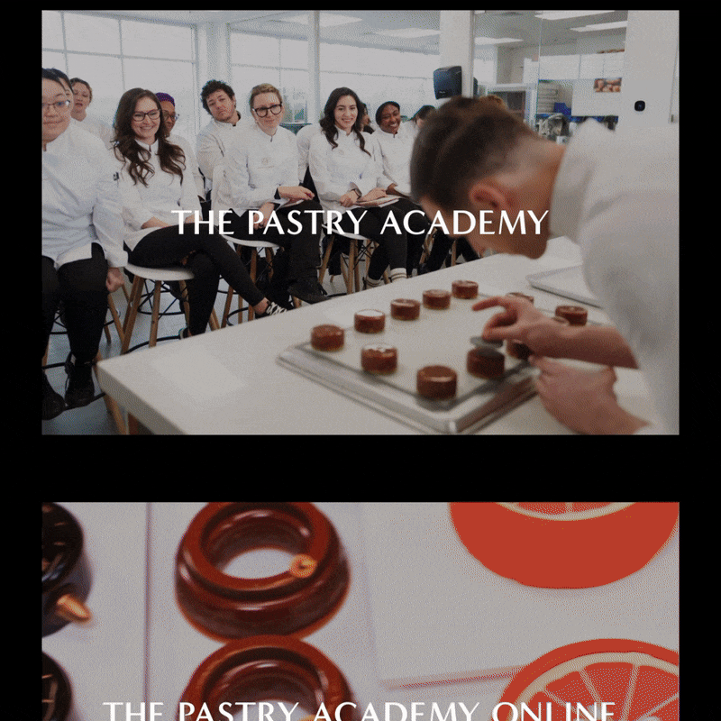 Promotional image for Pastry Academy online course by Amaury Guichon, encouraging signing up to learn pastry skills, with a headline 'Master the Art of Pastry', and a section offering a limited-time low price of $16.50 per month.